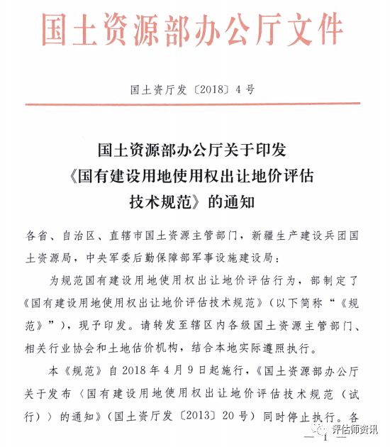 國有建設(shè)用地使用權(quán)出讓地價(jià)評估技術(shù)規(guī)范 | 國土資廳發(fā)(2018)4號
