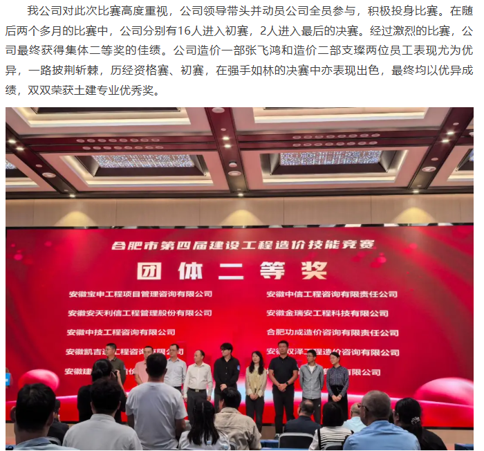 我公司參加合肥市第四屆造價技能競賽并獲得佳績