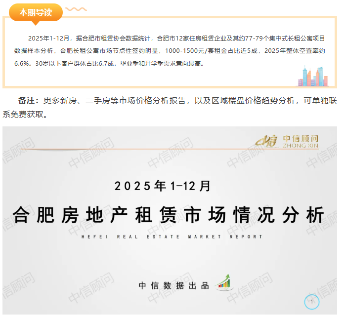 租賃市場 | 2025年1-12月,合肥長租公寓市場空置率約6.6%,市場節點性簽約明顯
