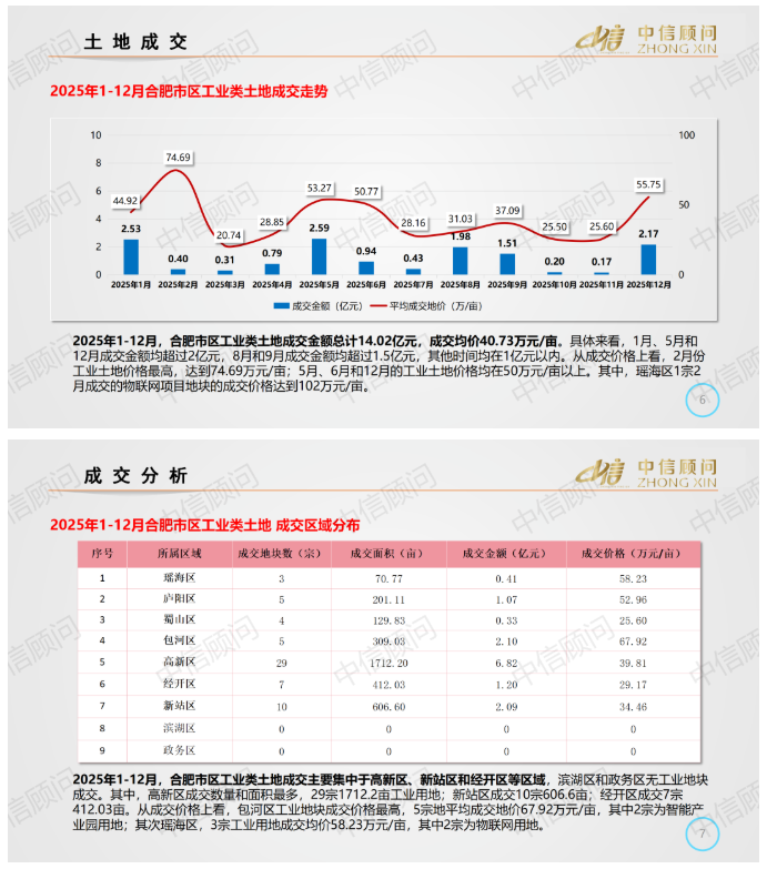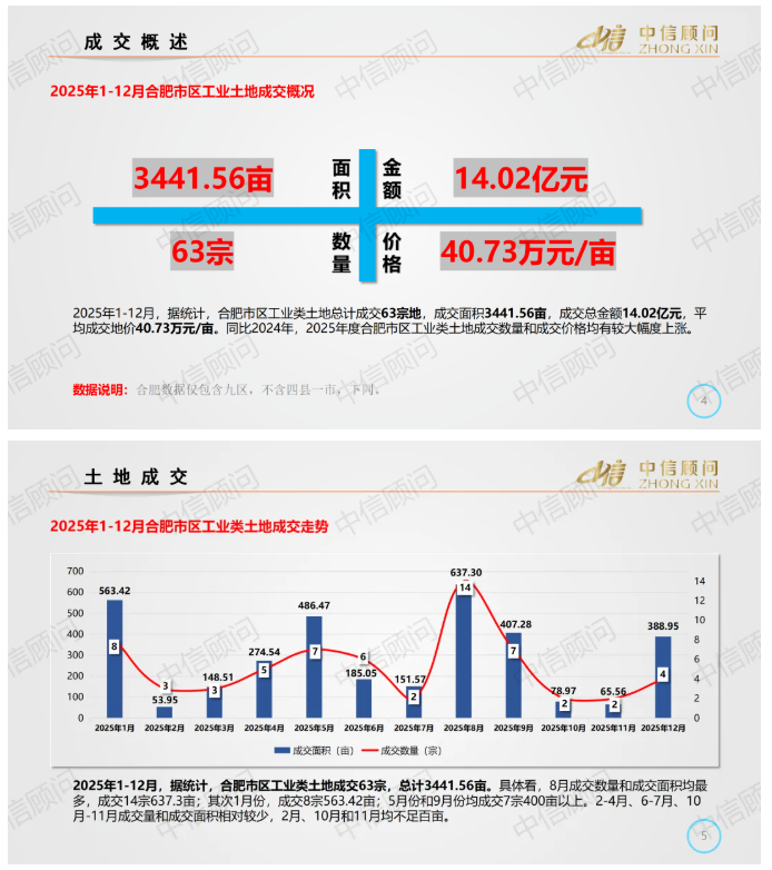 土地市場 | 2025年1-12月,合肥工業用地成交63宗3442畝,平均地價40.73萬元/畝