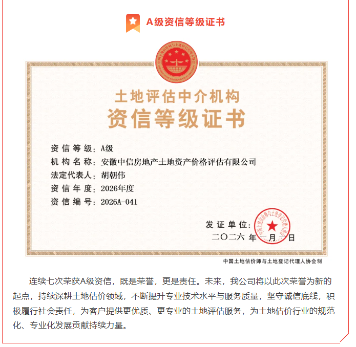喜報丨我單位榮獲2026年度土地估價機構信用評價 A 級資質榮譽稱號